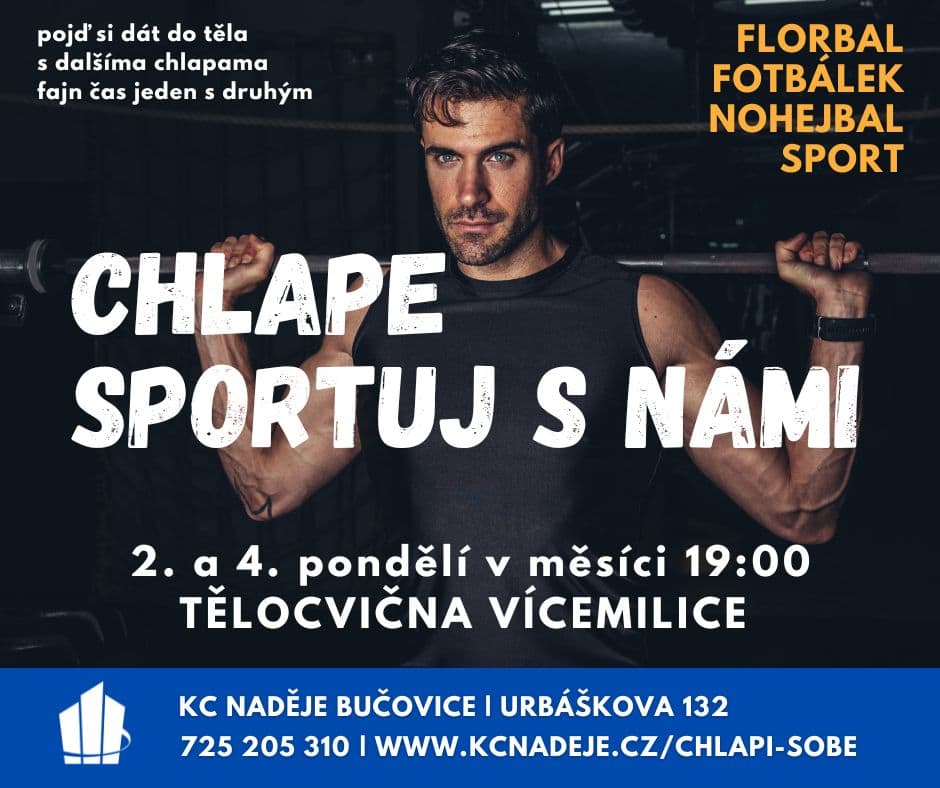 4/ CHLAPE SPORTUJ S NÁMI - sportovní aktivita, kde si chceme jako chlapi dát trochu do těla, zabavit se sportem, být spolu i pokecat si. Aktivitu má na starost Martin Chlubna st. (tel: 725 205 310).